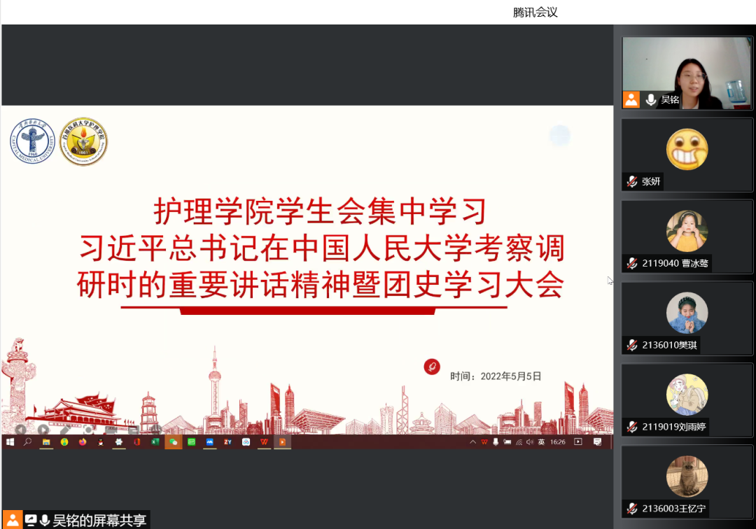 为了深入学习习近平总书记在中国人民大学考察调研时的重要讲话精神,继续深入开展学生会党史团史理论学习,进一步提升院学生会“自我教育、自我管理、自我服务”的意识,喜迎党的二十大,庆祝建团百年,开云kaiyun官方网站学生会于5月5日召开线上召开习近平总书记在中国人民大学考察时重要讲话精神暨党史团史学习大会,增强理论学习交流,夯实理论学习成果,提升院学生会凝聚力、战斗力。